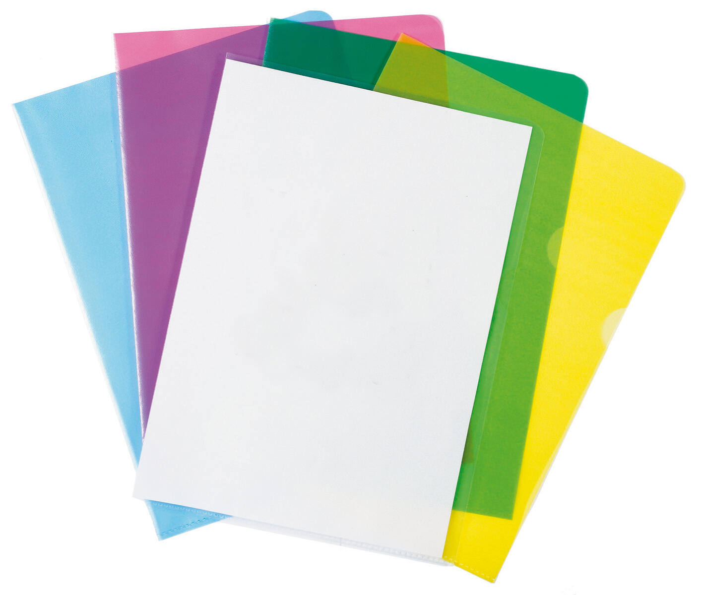 25 st/fp. Mappar i transparent plast med snoddar i 5 olika färger, 5 av varje: lila, orange, grön, blå och rosa. Med klaffar. Mått 315 x 245 x 3 mm