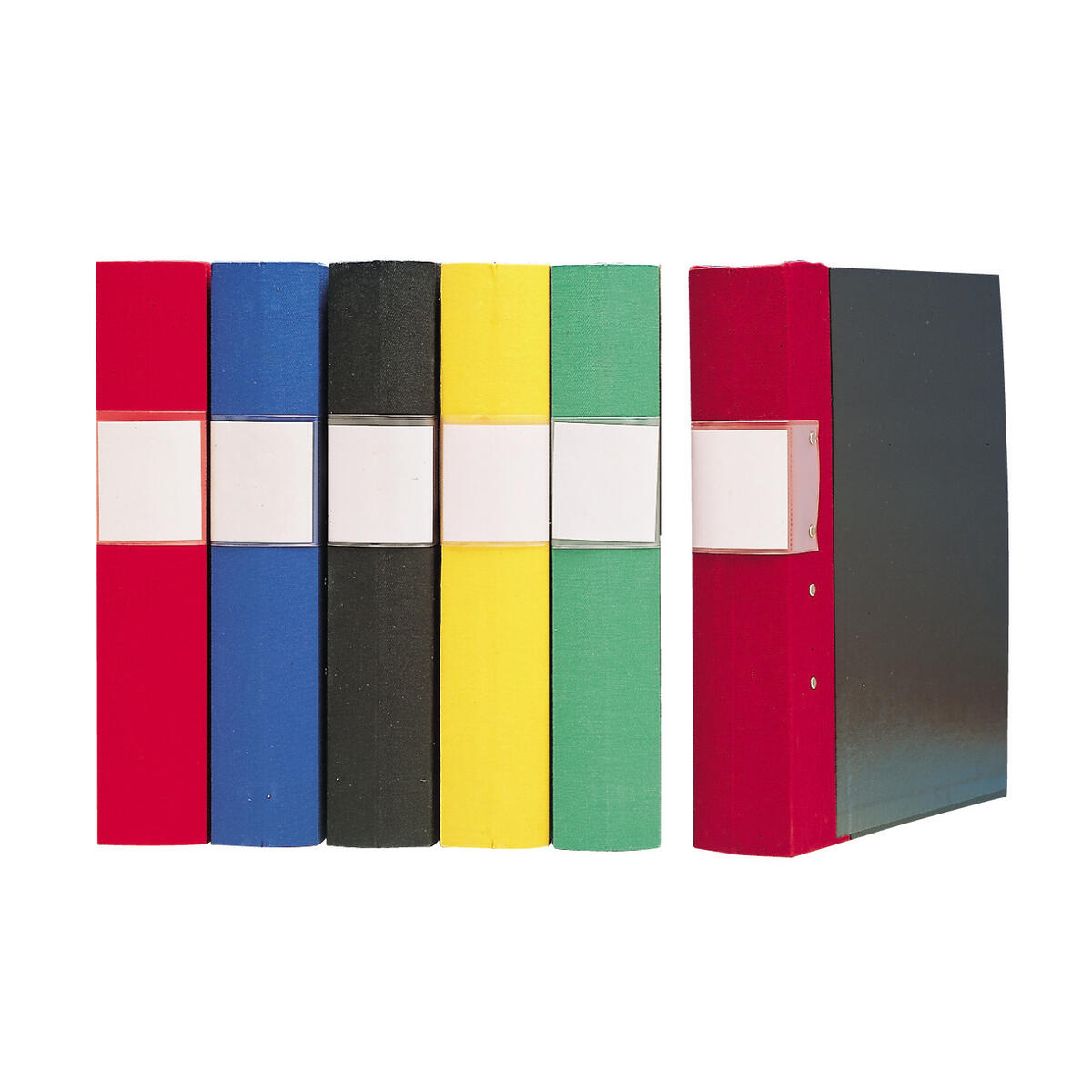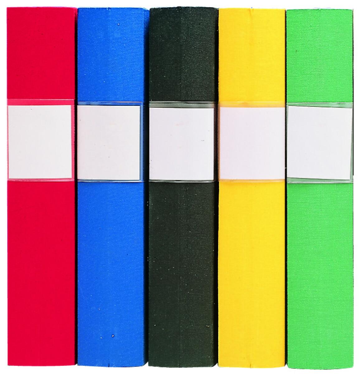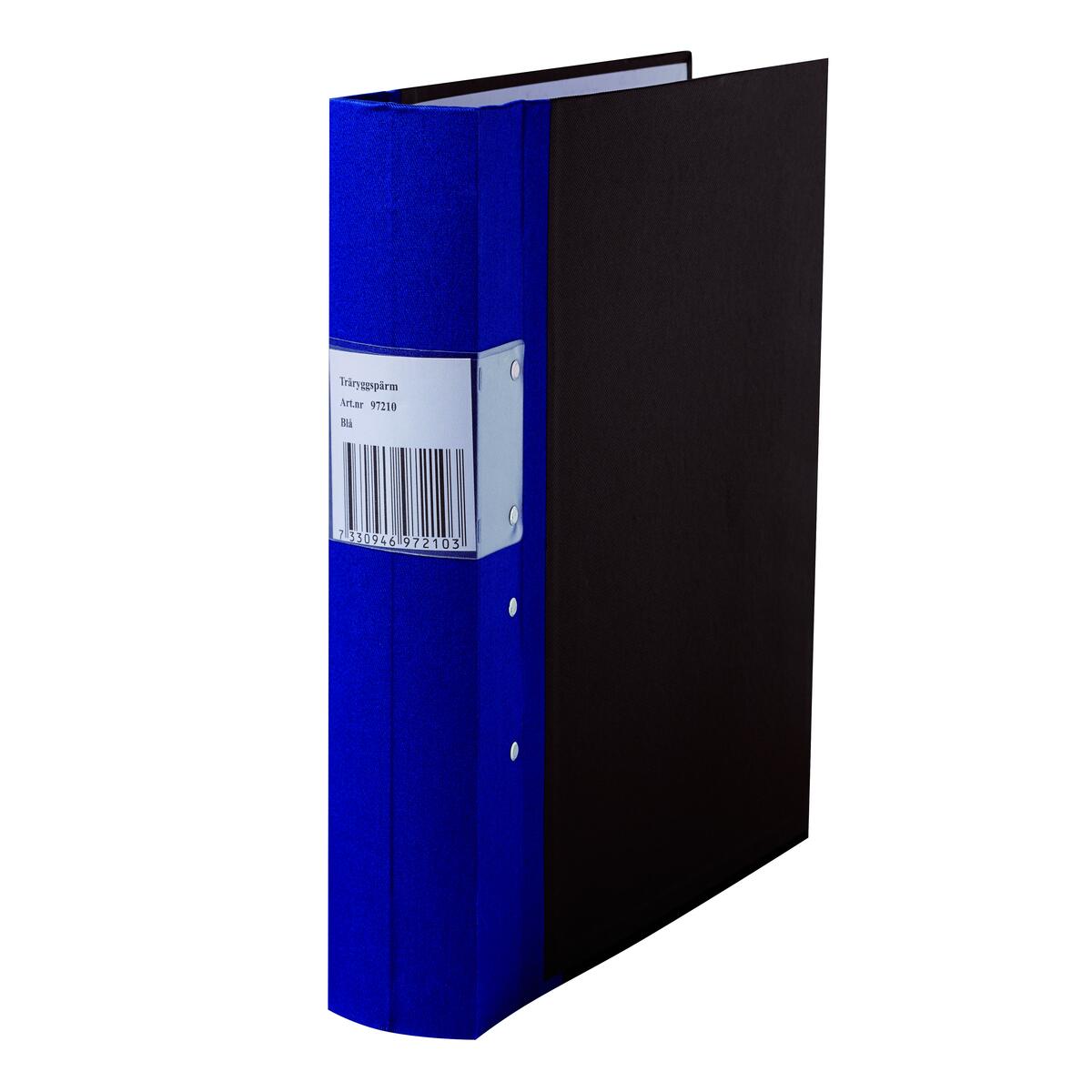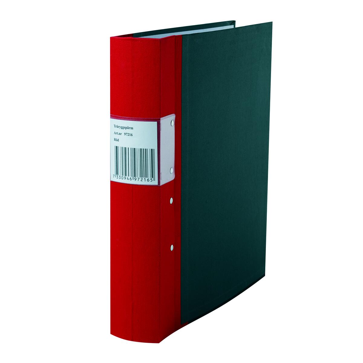 75 st/fp. Ingår 25 ringpärmar i 3 olika färger (röd, blå och svart). Tillverkade i konstläderpapp av returfiber. Med 29 mm nitad 4-ringad mekanism. Etikett på framsida och rygg.