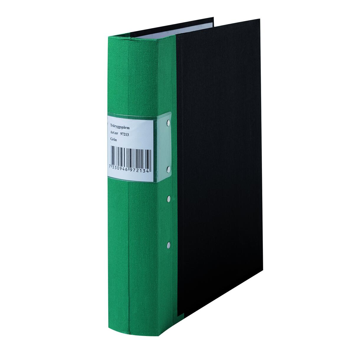 Klimatneutral och FSC-certifierad träryggspärm tillverkad i EU. SE-standard. Ergonomisk tryckknapp för enklare öppning/stängning med 5 års funktionsgaranti. Ryggbredd 40 mm, kapacitet 250 ark (80 g/m² papper).