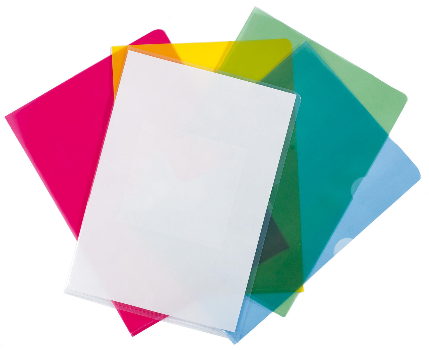 25 st/fp. Mappar i transparent plast med snoddar i 5 olika färger, 5 av varje: lila, orange, grön, blå och rosa. Med klaffar. Mått 315 x 245 x 3 mm