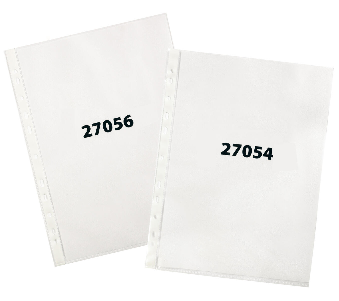 100 st/fp. Reflexfri plastficka av präglad polypropen. Öppen i överkant. Lätt att bläddra och öppna. Kopiesäker. Vit förstärkt rygg med internationell hålning