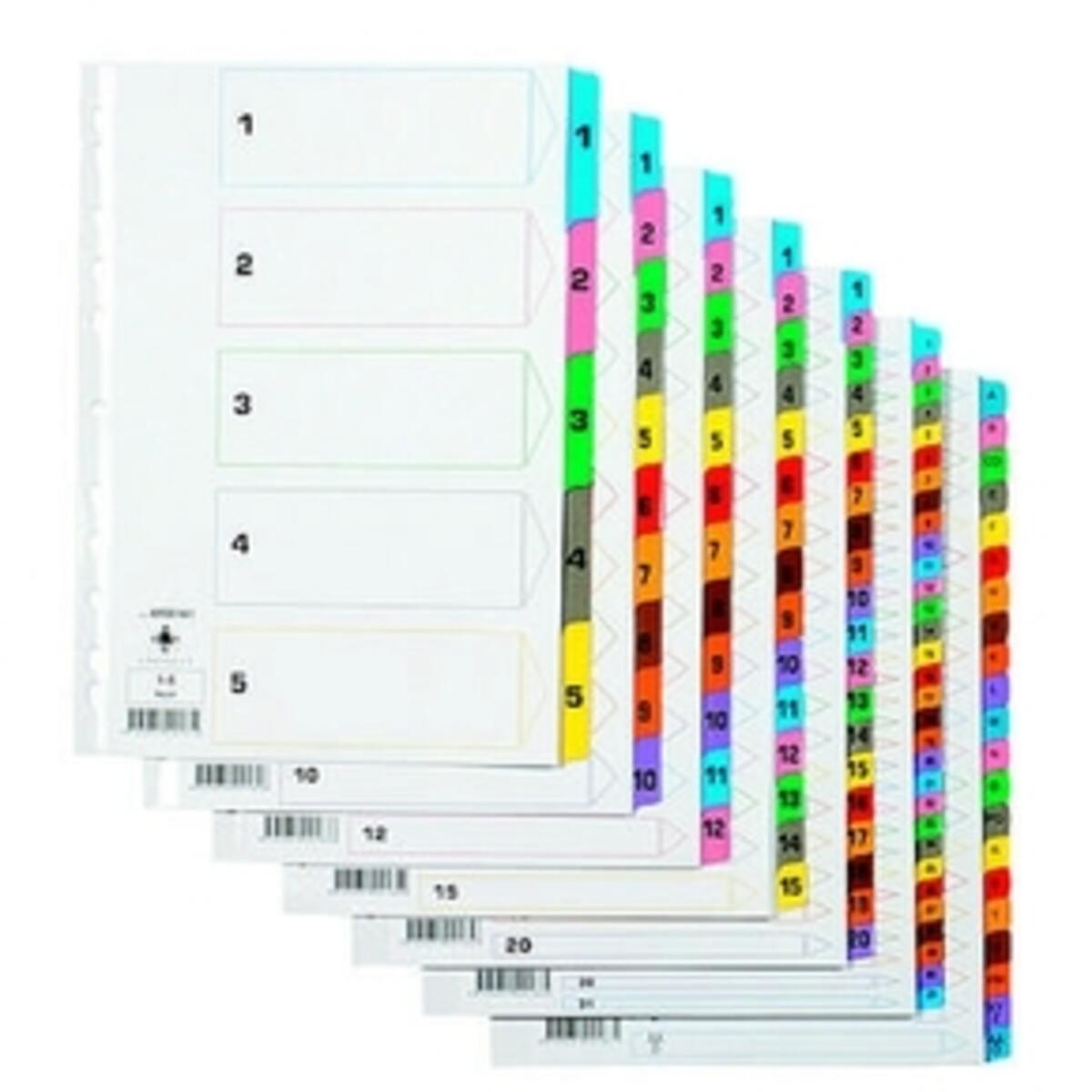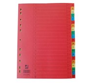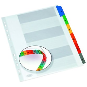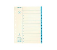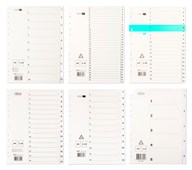 A4. Kartongregister innehåller plastförstärkta och färgade flikar. Vit kartong 170 g. Tryckt förstasida och flikar. De numrerade flikarna är ingående råvara FSC märkt och bokstavsflikarna är PEFC-märkt.