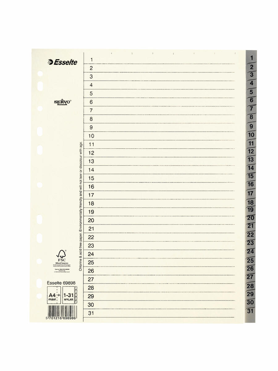 • Titel: Pappregister A4 110 g 1-31, 10-pack