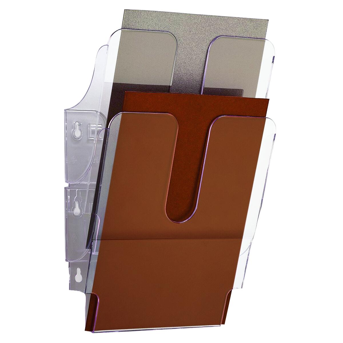 2 st/fp. Stående blankettfack A4 för vägghängning. Tillverkad av polystyrenplast. Facken hakas enkelt ihop på höjden eller används var för sig. Standardskruvar för väggmontage ingår. Tänk på att väggmaterial och beräknad tyngd vid användandet påverkar både skruvar och väggmontering. Mått: 360x247x100 mm.