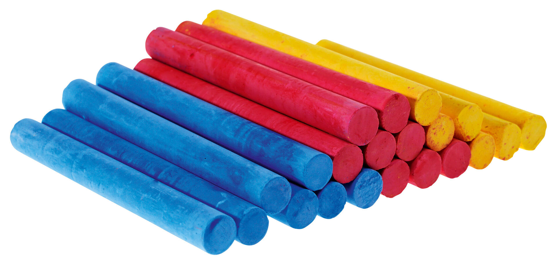 20 st/fp. Gatukritor av gips för utomhusbruk i blandade färger. För målning på asfalt, plattor m.m. Avlägsnas enkelt med vatten. Längd 11 cm. Tjocklek 2 cm. Hink av PP. PVC-fri. Från 3 år.