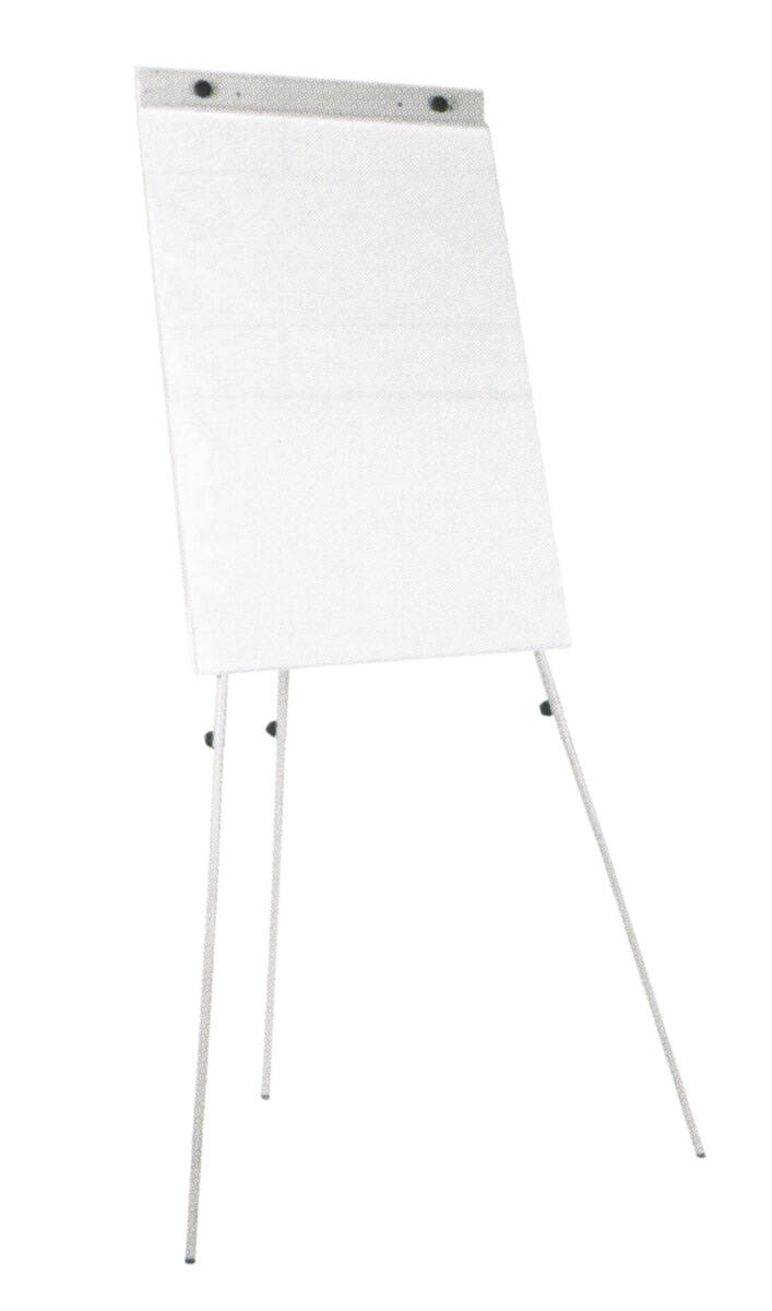 Konferensställ av lackerat stål. Höj- och sänkbart stativ. Utrustad med med magnetisk, lackerad skrivyta som passar för måttlig användning och bör rengöras regelbundet. Justerbara krokar för blädderblock och pennfack medföljer. Tavlans mått: 67x100 cm.