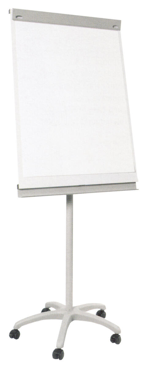 Konferensställ av lackerat stål. Höj- och sänkbart stativ. Utrustad med med magnetisk, lackerad skrivyta som passar för måttlig användning och bör rengöras regelbundet. Justerbara krokar för blädderblock och pennfack medföljer. Tavlans mått: 67x100 cm.