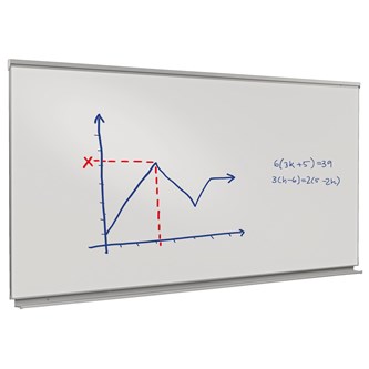 Skrivtavla med aluminiumram som går att få med olika ytor. Svart, blå och grön är för kritor. Vit är med glasemaljerad plåtyta för whiteboardanvändning. Grå plasthörn. Pennhylla och beslag för väggmontering medföljer. Magnetisk.