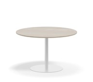 Bord Day med svart stativ och vitt stativ hjälper till att förlänga klassrummet och skapar flexibilitet. Sätt dem i en cirkel eller på längden för att tillgodose olika typer av varierande lärsituationer. Olika möbleringsmöjligheter skapar inkluderande ytor där varierande inlärningsstilar och behov får ta plats. Borden syns tillsammans med vår hållbara stol Karoline med C-stativ och 4 ben. På bilden längst ner har skolans platsbyggda bänk sällskap av pelarbord Pilastro (kontakta kundtjänst för info) och sittpuff Volt.