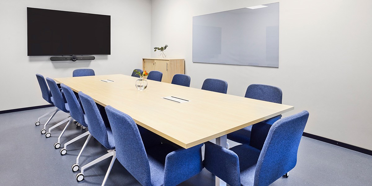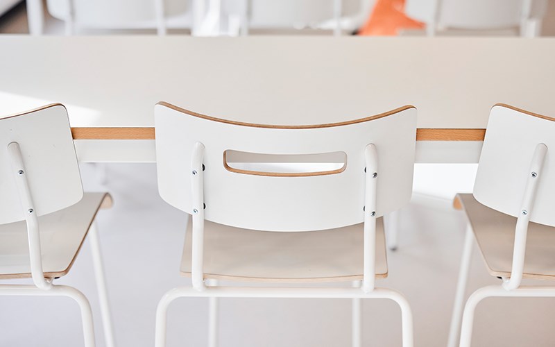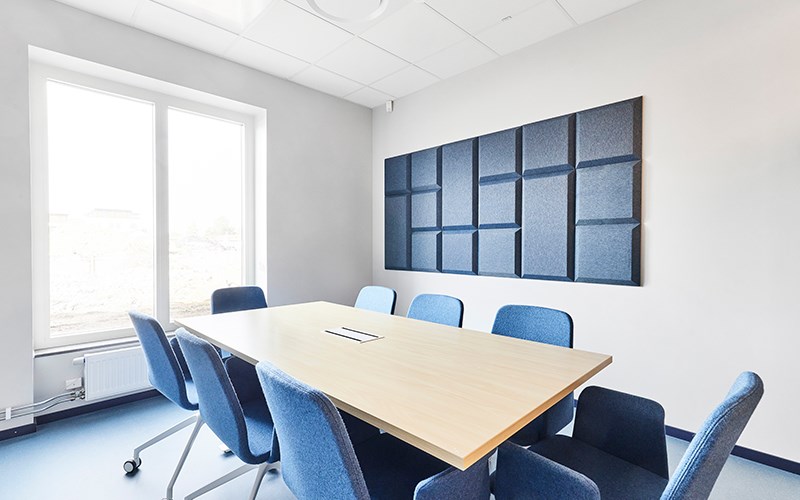 I mötesrummen finns det verkligen plats att mötas i sköna stolar och vid smidiga bord. Skolans konferensrum har fått en sober och dämpad inredning med ljudabsorbenten Enkel och stolarna Sunrise (kontakta kundtjänst för info) i matchande kulörer. Det stora konferensbordet heter Talk. På rektorns kontor syns skrivbordet Work tillsammans med en bekväm kontorsstol, pelarbord Pilastro, förvaringslösning Ordna och stol Sunrise (kontakta kundtjänst för info).