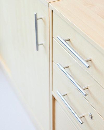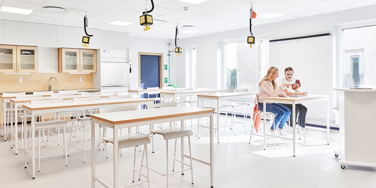 De naturvetenskapliga ämnena kräver stabila och säkra basmöbler. De stadiga labborden med tålig skiva i laminat är skapade för intensiva laborationer. Tillsammans med den höga stolen Formel kombineras smakfull formgivning med tålig funktion. Lärarens ståpulpet heter Elling och är såklart på hjul. Här finns också ett skoldragskåp och materialskåp med och utan fönster för all labbutrustning.